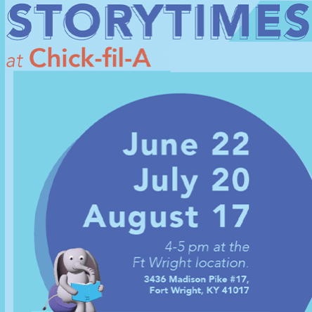 Join us at Chick-Fil-A from 4-5 pm for a special storytime from the Kenton County Public Library.