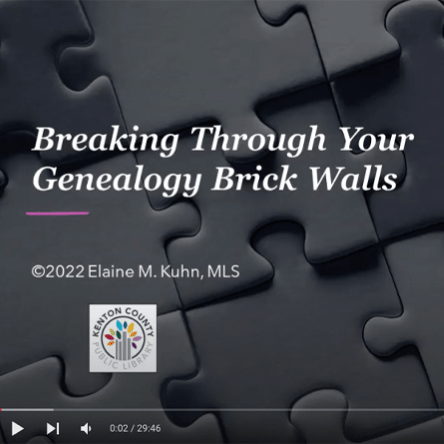 Join Elaine Kuhn, Local History & Genealogy Dept. Coordinator for this 30 minute video and learn how to break through your own genealogy brick walls.