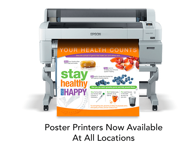 • Poster printers are available at all of our locations.  Please contact them to setup a reservation