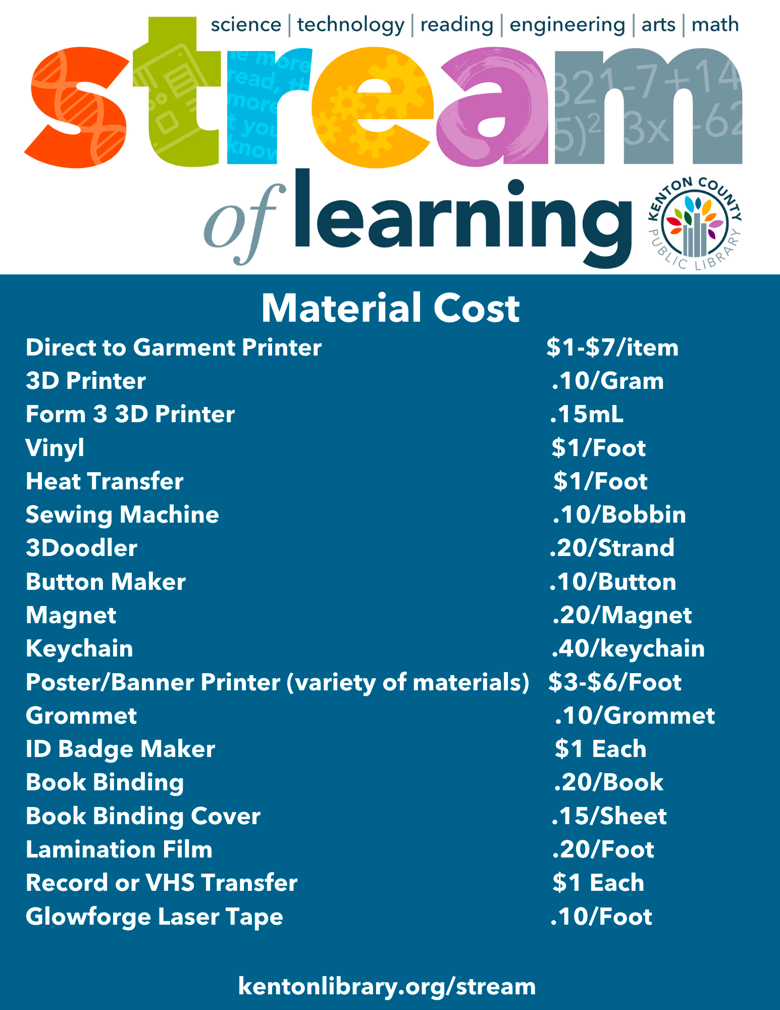 Print a poster or sew something new.  See all of our Erlanger STREAM center equipment.