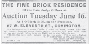 In 1903 Susan, through her brother William, bought a large home located at 27 West Eleventh Street (changed to 25 in 1917), to operate a private school along with private music instruction. The house had been the home of Judge James J. O’Hara (1825-1900.) The house sat on a large double lot, situated on land originally owned by the Western Baptist Theological Institute. Upon Judge O’Hara’s death, his grand home was sold at auction on June 16th, 1903. It was advertised as having the following: