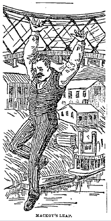 On Thursday, November 5, 1885, Dr. John Mackoy Jr. committed suicide by jumping from the Covington and Newport Bridge into the Licking River. He committed the deed while under a temporary fit of insanity brought on by excessive use of alcoholic drinks.