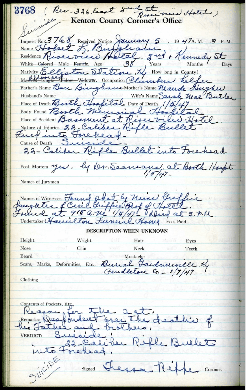 We found Hobert L. Bingham in the Kenton County Coroner Inquest Records in GeNKY.