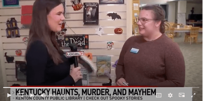 The library is celebrating Halloween and family history month with its Kentucky Haunts, Murder, and Mayhem series. You can check out local spooky books and e-books from the library.