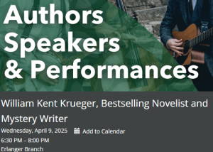 William Kent Krueger has been a Bouchercon favorite for years. Krueger was on hand to promote his new Cork O'Connor novel, Spirit Crossing. See him in person next year in Erlanger. He will give a book talk and sign books at the Erlanger branch on April 9, 2025.