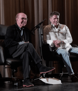 Brad Thor, on the right, is interviewed by David Morrell, creator of the Rambo series. Thor was on hand to promote Shadow of Doubt, his latest thriller.